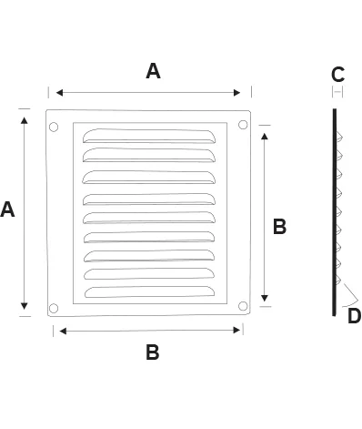 As grades metálicas da linha GFM-T, são grades fabricadas em chapa de aço com pintura branca, possuem 04 furos de fixação, aletas para saída do ar e tela anti-inseto. Usada para sistemas de ventilação natural.