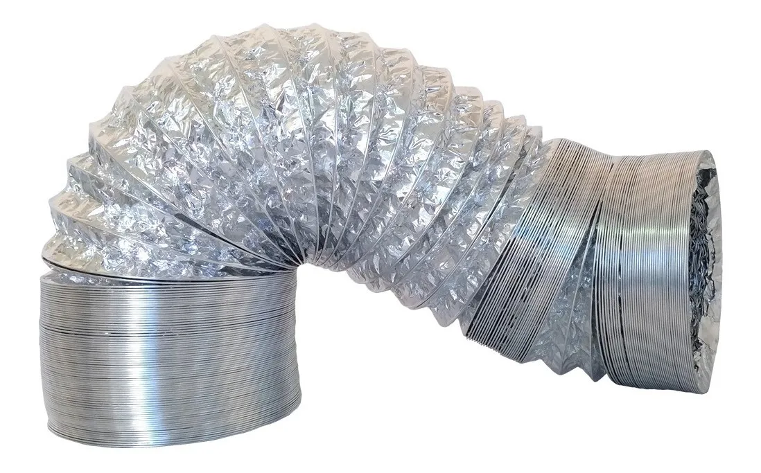 Duto Flexível confeccionado em laminado de aluminio com estrutura em arame de aço tratado. Altamente flexível e compactável. Utilizado para ventilação e exaustão.